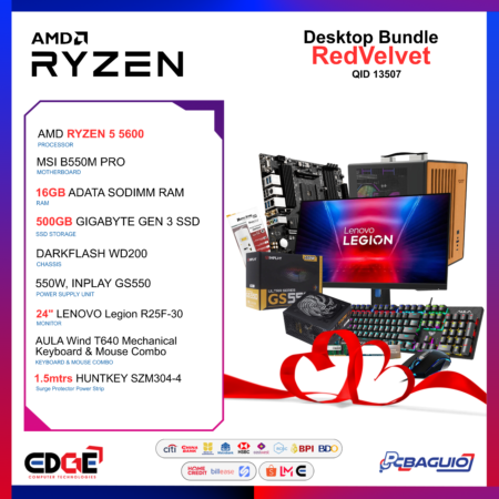 Mariage d’ amour | Ryzen 5 8600G | 16GB DDR4 RAM | 500GB SSD | 27″ FHD Monitor | Keyboard | Mouse | 3-Port Surge Protector (QID 13513)