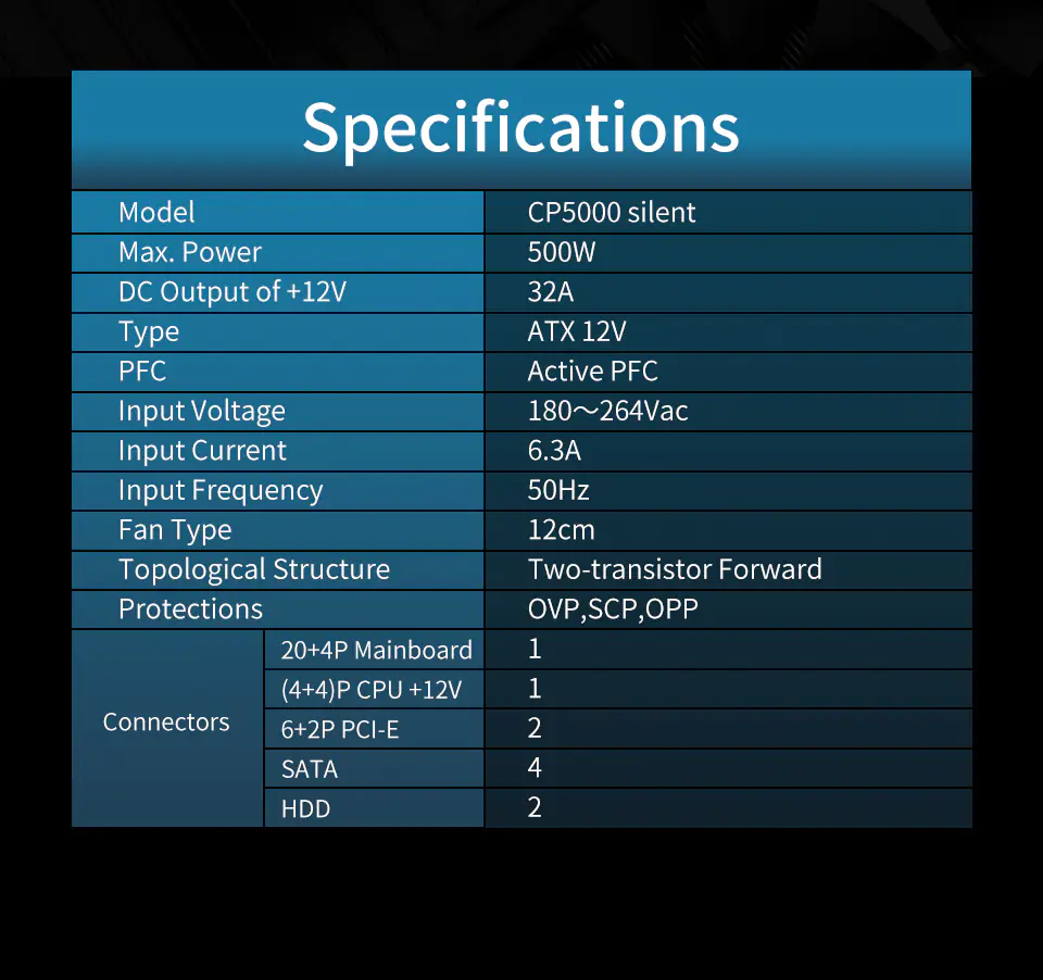 • PFC Type: A-PFC/180-265V~