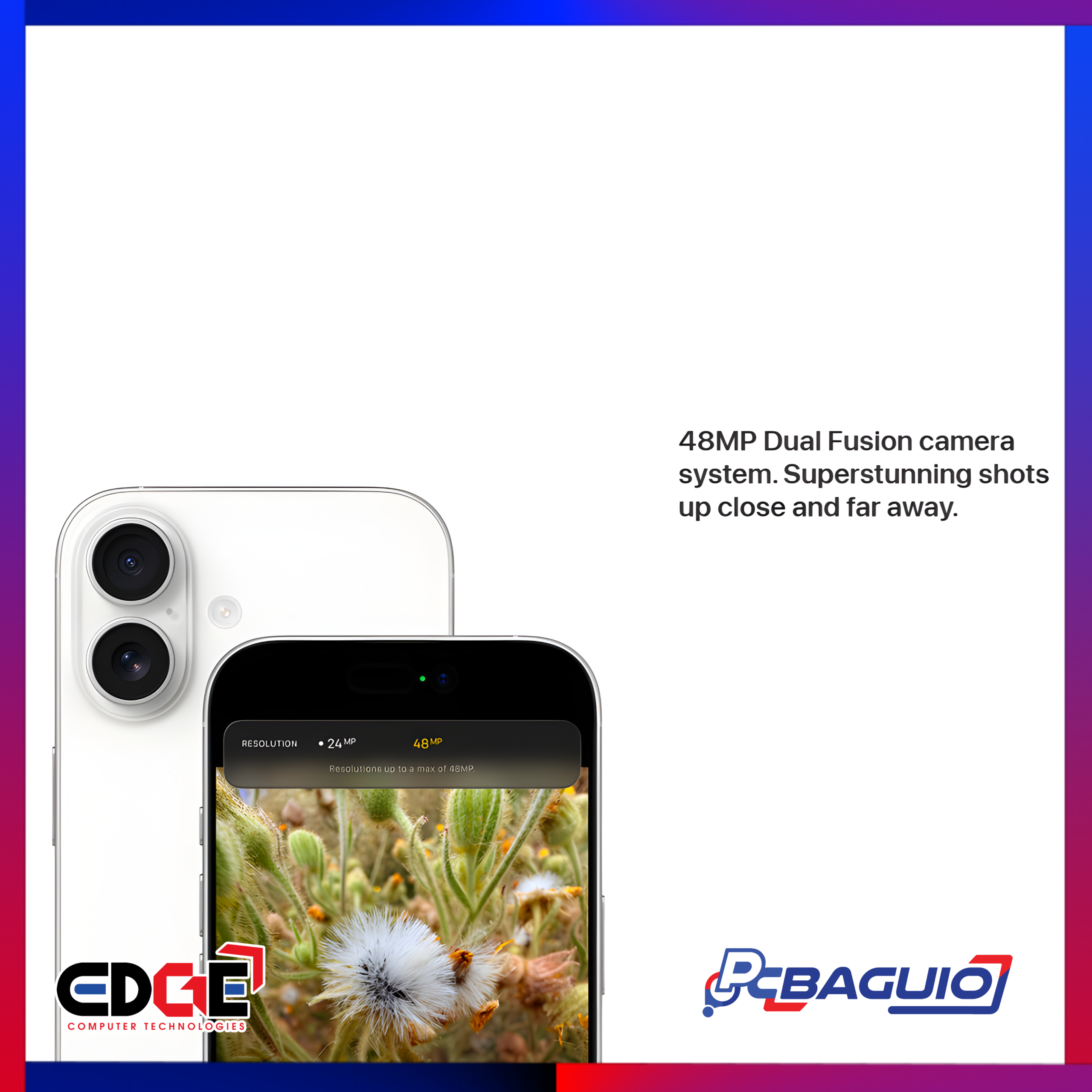 48 MP, f/2.2, 13mm, 120Ëš (ultrawide), 1/2.55″, 0.7µm, PDAF |