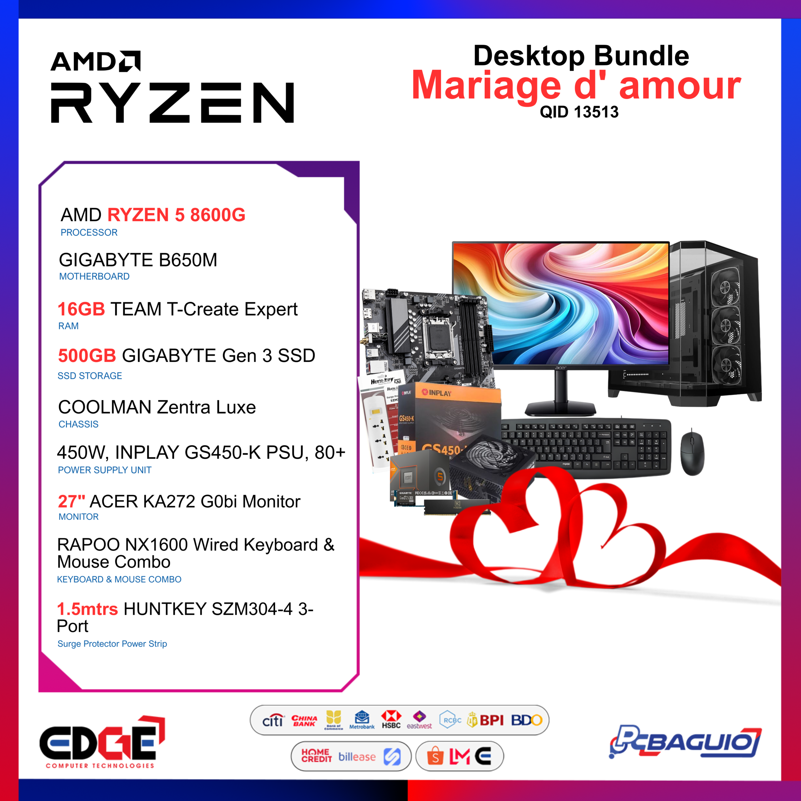 | PROCESSOR | AMD Ryzen 5 8600G 6 Cores | 12 Threads | 4.3GHz AMD Radeon Integrated Graphics |